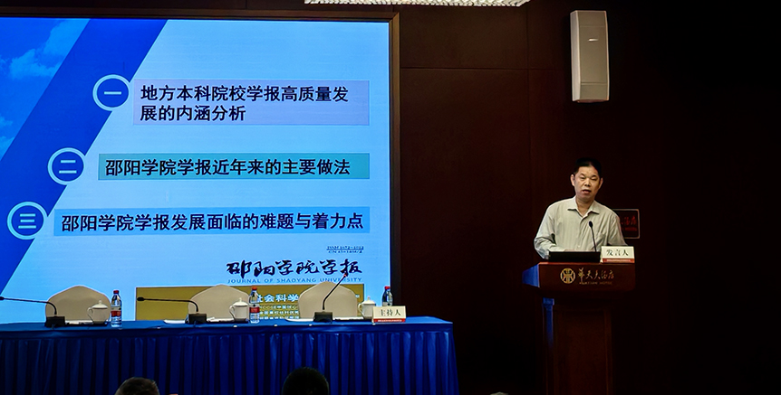 10月13日,湖南省高校学报研究会文科学报专业委员会2023年度经验交流会在永州召开,会上宣读了湖南省高校学报研究会关于湖南省优秀期刊、特色栏目、玉笔奖的评选结果,《邵阳学院学报(社会科学版)》获评“优秀期刊奖”三等奖,“魏源与邵阳人文研究”栏目获评“特色栏目奖”。会议邀请了来自湖南大学、湘潭大学、湖南师范大学、湖南科技大学、中南林业科技大学、长沙理工大学、中共湖南省委党校、邵阳学院、湖南科技学院的8位优秀办刊代表发言,介绍办刊经验,期刊社社长马骥教授应邀进行了发言。