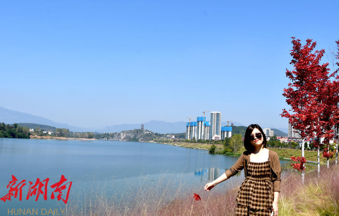 新新邵客户端10月18日讯 深秋时节,新邵县资江风光带、思邈公园等地的粉黛乱子草、红枫等景观植物进入颜值高峰期。只见防洪堤护坡上的粉黛乱子草,如同一条粉红的缎带随着游步道蜿蜒伸展,如梦如幻。河岸上,一排排的枫树红叶尽染,如火似锦,与蔚蓝的天空、碧绿的草木、彩色的游步道、澄澈的江水交相辉映,把秋日的新邵装扮得分外美丽、迷人。