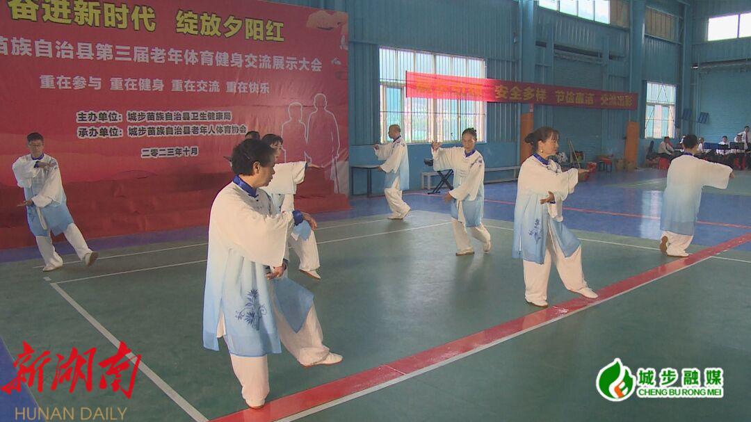 新城步客户端10月19日讯(见习记者王鲲)为充分发挥体育在应对人口老龄化方面的积极作用,增强广大老年群众的健身意识,10月19日,由县卫健局主办、县老年人体育协会承办的城步第三届老年体育健身交流展示大会在县气排球场馆举行。县卫健局、县老年人体育协会相关负责人以及秋之韵合唱团、广场太极队、广场舞协会、苗岭健身队等17支代表队参加。