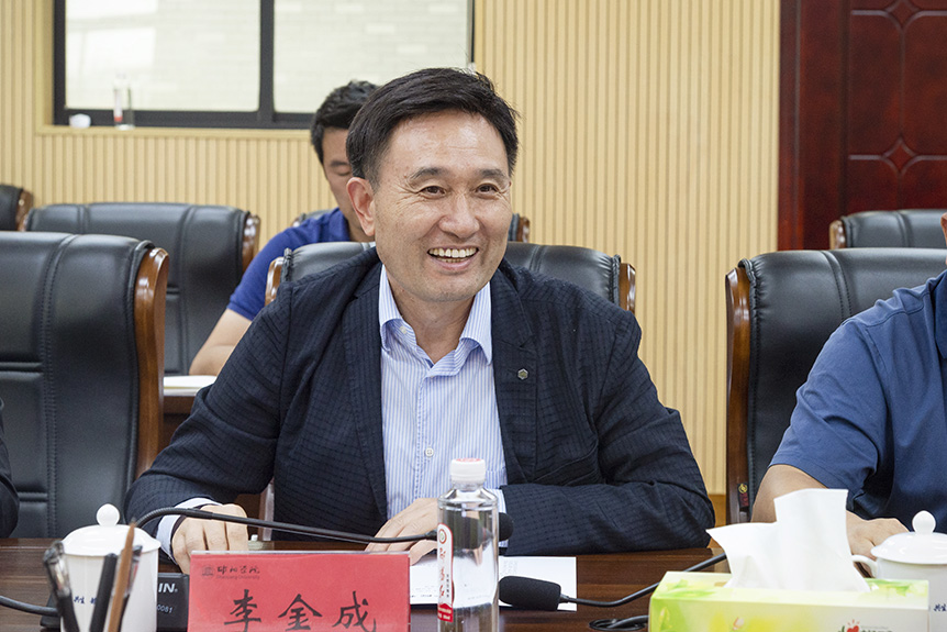李金成对伍贤进一行来校调研交流表示热烈欢迎,同时简要介绍了学校的历史沿革、办学特色、学科建设、产教融合、师资队伍建设等情况。