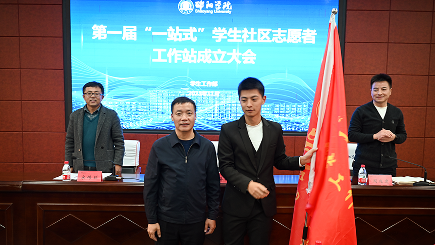 11月16日下午,邵阳学院“一站式”学生社区志愿者工作站成立大会在七里坪校区润德楼报告厅举行。学生工作部部长蒋德意,学生工作部副部长周廷建、宋传颖出席大会,学生工作部各科室全体人员参加会议。大会由学生工作部副部长周廷建主持。