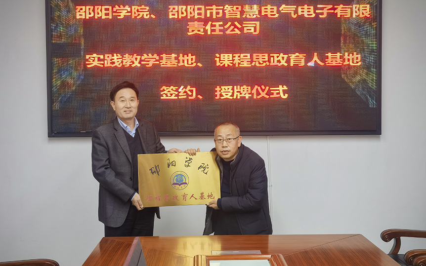 12月1日,邵阳学院与邵阳市智慧电气电子有限责任公司(简称“智慧电气”)的实践教学基地及课程思政育人基地的揭牌仪式在智慧电气举行。邵阳学院党委委员、副校长李金成、教务处(教学评估与教师发展中心)处长唐杰、副处长宋娟及智慧电气董事长徐慧一行参与了此次揭牌,共同见证了这一重要时刻。