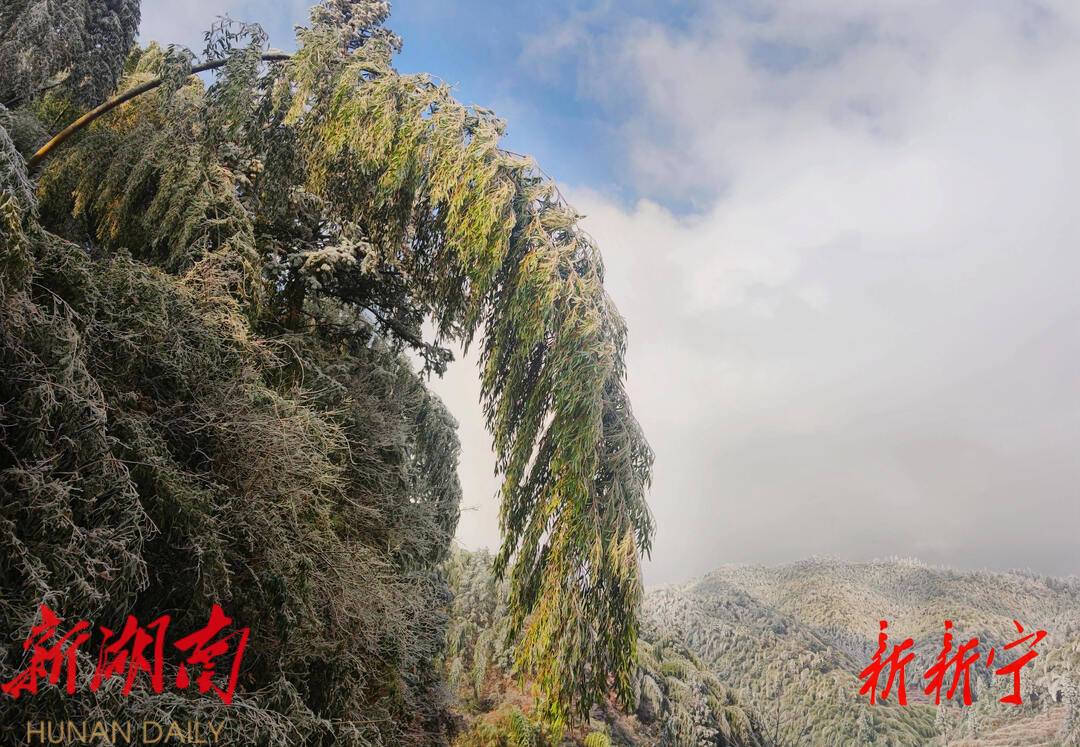 冬意渐浓,日前新宁迎来今冬首场降雪,受低温天气影响,在平均海拔1200余米的黄金瑶族乡黄金牧场,放眼望去,一片银装素裹的冰雪童话世界。