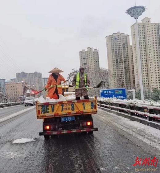 1月21日晚,邵阳第一场雪在深夜悄然飘落,市城管部门闻雪而动,通宵作业,第一时间组织铲冰除雪作业,市政公司和四区城管环卫出动人员800余人次,80余台次,对城区城市桥梁、关键路段巡查、清扫除雪,撒融雪剂14吨、工业盐19吨,确保了市城区道路安全畅通。市园林中心出动人员130余人,车辆25台次,对辖区各养护路段、坡道,公园主要道路路口、坡道、廊桥放置警示标识标牌130余块,提醒过往行人注意通行安全,对辖区范围内道路行道树进行除雪工作,清理断枝100余处,扶正倒树2株。对辖区公园广场除雪扫雪,城南公园等9个公园广场累计撒除雪盐55包,除雪破冰65000平方米,巡查清理断枝20斗车。