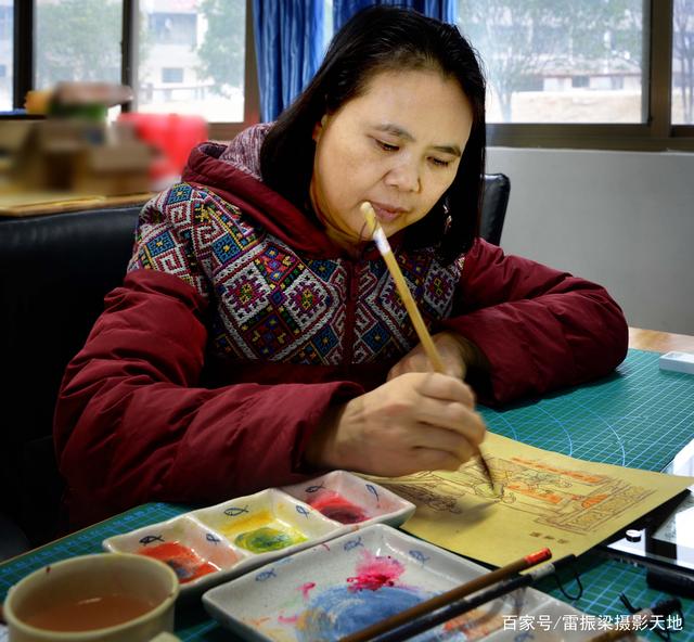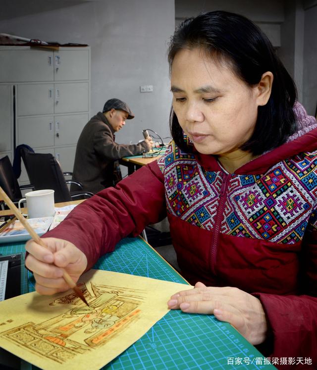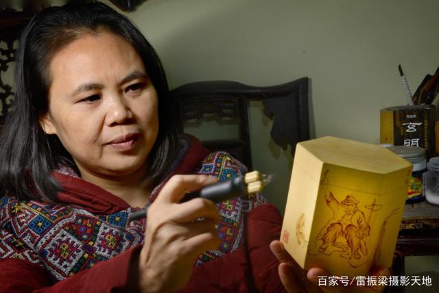王艳萍在宝庆烙刻艺苑工作室绘画