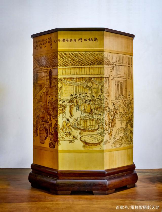 宝庆烙画竹艺作品《新娘回门》