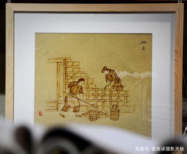 宝庆烙画作品《砌匠》