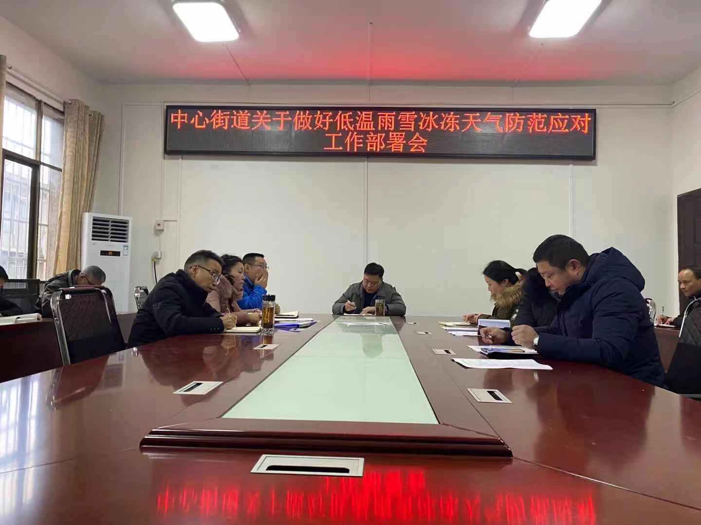 大祥融媒讯: (通讯员 蒋适)12月14日,中心街道召开低温雨雪冰冻天气防范应对工作部署会.街道班子成员和社区书记及相关部门负责人参加会议。会议传达学习了上级关于低温雨雪冰冻天气防范应对工作的会议精神,就街道低温雨雪冰冻天气应对工作进行了部署安排。